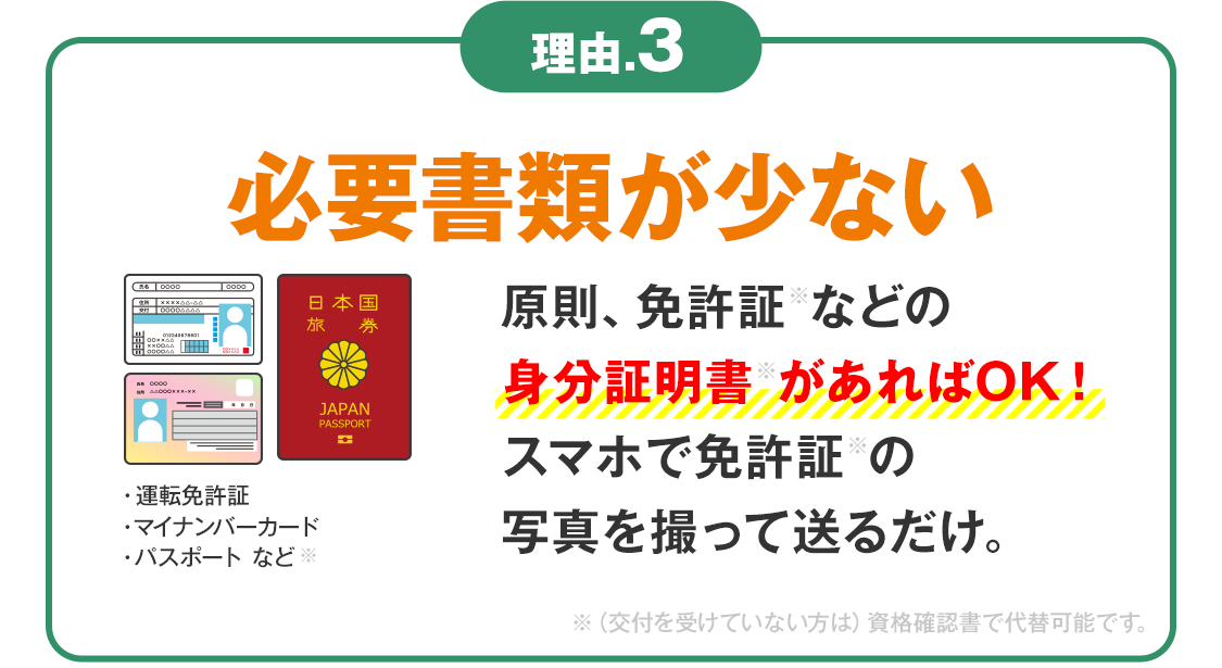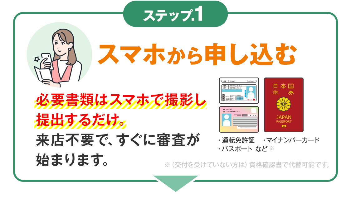 - 申込みはスマホで簡単、必要書類は身分証のみ!